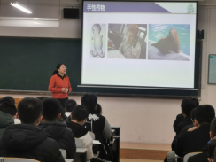 集中备课结束后,肖海燕老师在B308教室进行了《化学与人类》思政示范公开课。肖老师由著名的“海豹儿”事件引入课程主题——手性药物,课堂中不仅有师生互动,还采用同学们小组讨论实物模型的生生互动方式,充分发挥了学生的主体地位,最后用沙立度胺的发展史和屠呦呦发现青蒿素的历程将课堂教学推向高潮。该公开课教学设计层层递进,采用BOPPPS教学模式,运用了慕课堂,将思政元素润物细无声的贯穿整个课堂,博得全场听课的教师的喝彩。