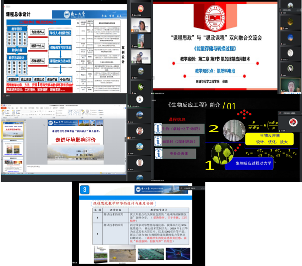 为提升学院课程思政建设工作的精准性、融合性、有效性,推动专业课教师与思政课教师双向沟通与交流,构建全员、全过程、全方位育人的“大思政”格局,12月8日下午,学院联合马克思主义学院开展课程思政与思政课程“双向融合”联合备课教研活动。根据疫情防控要求,本次活动采用线上形式开展,邀请马克思主义学院教师进行指导,教务处相关人员以及环境与化学工程学院全体教师参加。学院每个基层教学组织邀请一名处级领导参加,教务处副处长赵春梅、马克思主义学院副院长刘永志、环境与化学工程学院党委书记王继东、院长高大威、副院长焦体峰、副院长张庆瑞、副书记韩冰分别参加线上研讨活动。