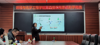 为全面推进我院课程思政建设工作深入开展,切实促进各类课程与思政课同向同行,11月4日下午,环境与化学工程学院第四届课程思政教学竞赛在世纪楼618成功举办。我院党委书记王继东、副院长焦体峰,化工系刘玉文教授、应化系郭文锋教授、环境系张庆瑞教授、过程系乔桂英教授及理学院李玉双教授担任了本届竞赛的评委。