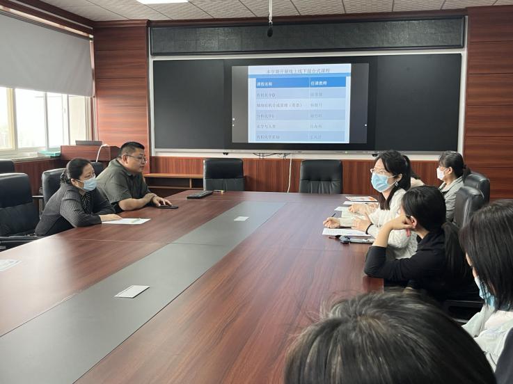 近日,根据学校《主题教育调查研究工作方案》相关要求,我院立足学院各专业教学发展需要,结合学院实际,对各专业展开了专题研讨会等系列活动。5月11日下午,教学副院长焦体峰和化学工程与工艺专业教师在世纪楼618会议室组织召开了“线上线下混合式教学”专题研讨会,化学工程与工艺专业刘素燕老师主持会议。