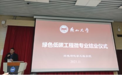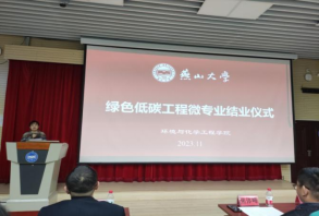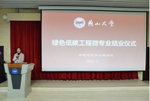 2023年11月4日上午,环境与化学工程学院”绿色低碳工程“微专业结业仪式在东校区四教109隆重举行。教务处副处长赵春梅,环境与化学工程学院副院长焦体峰、党委书记副书记才华、副处级辅导员李莹、相关教学管理人员、“绿色低碳工程”微专业部分教师以及25名微专业学生参加了结业仪式,仪式由环境与化学工程学院化学工程与工艺系主任刘素燕主持。