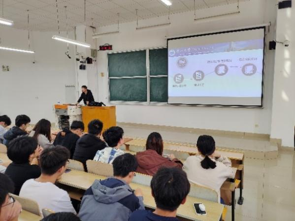 在西(三)208阶梯教室对专业全体学生进行培训时,郭凯老师根据不同年级特点对专业进行详细介绍,对专业培养目标、毕业要求、课程体系、课程教学的整个运行机制进行解读,并介绍了审核评估的发展和本轮审核评估工作内涵。最后张前和郭凯两位老师还针对学生提出的关于审核评估和培养目标等问题进行了解答。