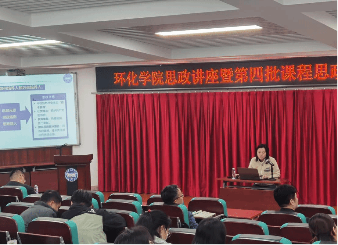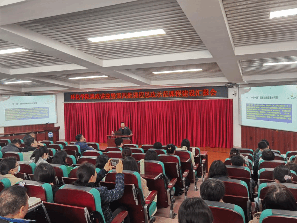 为全面深入推进学校课程思政建设,实现课程思政高质量建设、长效化发展,推动专业课教师与思政课教师双向沟通与交流,11月12日下午在三教213,环境与化学工程学院与马克思主义学院联合开展召开了思政讲座暨第四批课程思政示范课程建设汇报会。本次活动邀请马克思主义学院郭祥俊老师进行讲座,学院第四批课程思政示范课程项目负责人霍全、袁德玲、韩增胜三位老师分别做汇报,学院全体教师参加。会议由焦体峰副院长主持。
