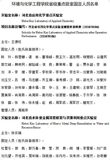 环境与化学工程学院省级重点验室固定人员名单