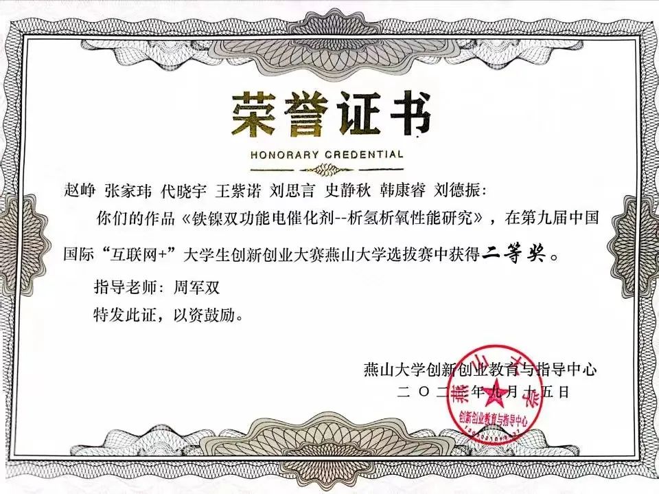 第九届中国国际“互联网+”大学生创新创业大赛校级二等奖