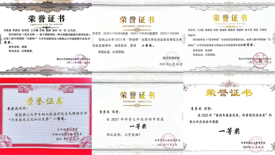 他深知学科竞赛的起步并不是一帆风顺的,需要扎实的知识储备以及相关的专业技能。从起初的项目投递无人问津,到后来的屡屡斩获含金量大奖,这是一个不断学习,并且不断进步的过程。面对屡次的碰壁,他并没有气馁,反而愈挫愈勇,一路走到现在,斩获科研竞赛奖项国家级7项、省级11项。