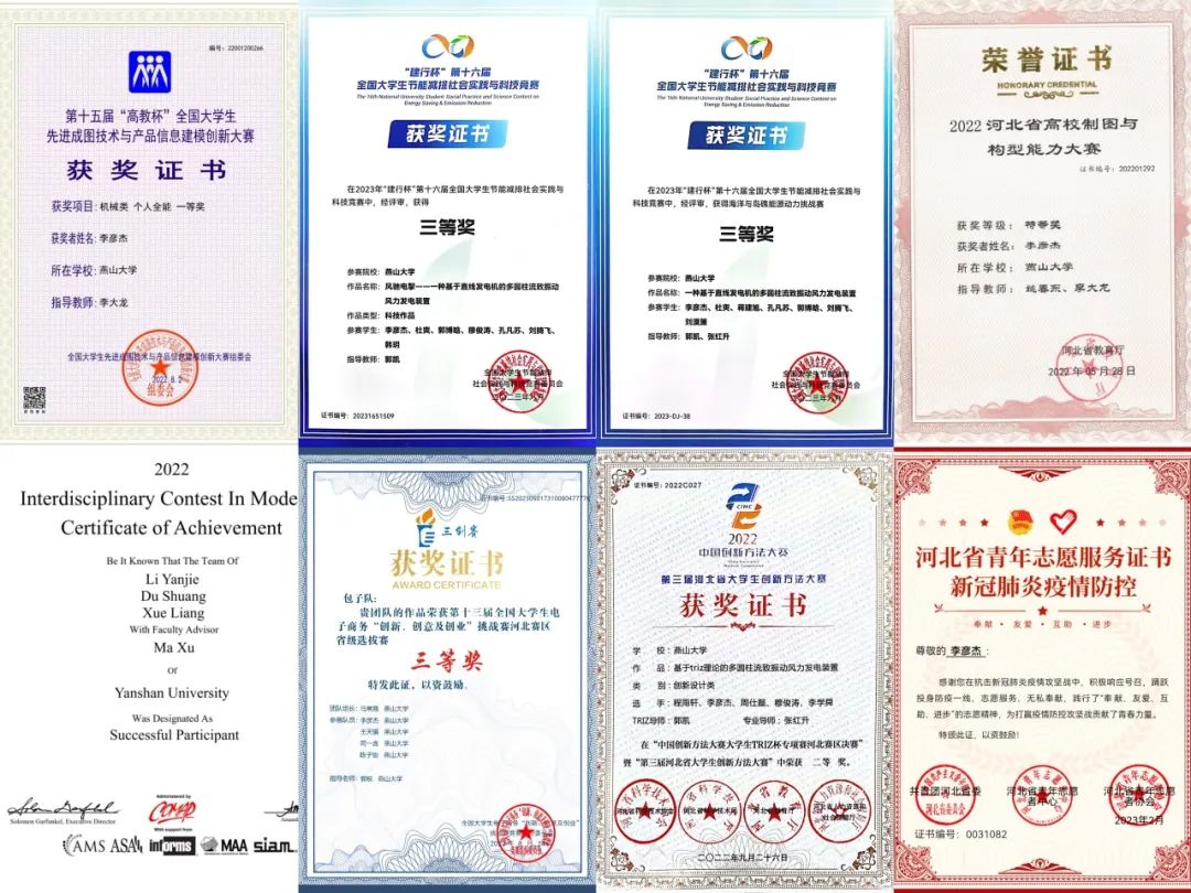 他大一下学期开始进入实验室,跟着师兄做实验。从最基本的实验操作,到软件的仿真模拟;从实验样机的搭建,到实验数据的采集;从实验结果偏差的分析,到最终的精确成果,这一路他走了两年。他见证了样机从第一代到第二代、第三代,不断地创新改进。而他日复一日的付出,也终取得了成功。他主持的省级大创项目《电磁-压电耦合风力发电装置》,获评“优秀结题”,随后在河北省大学生创新创业年会中荣获成果展示类二等奖,而这实现了过程专业在该竞赛中“零”的突破。
