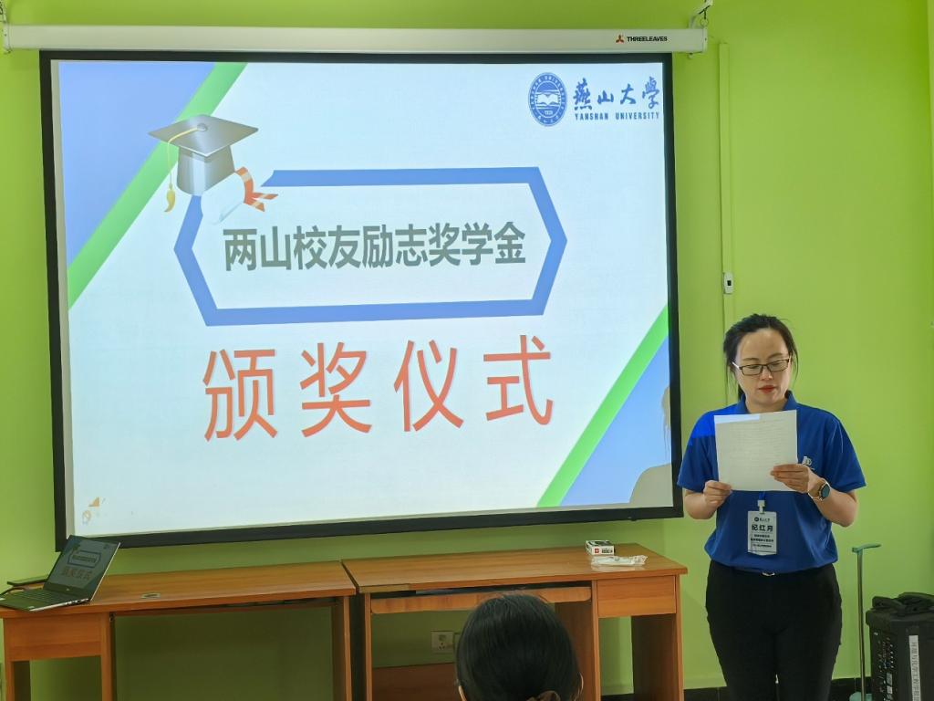 纪红月首先介绍了“两山校友励志奖学金”的设立背景:由2002级环境工程专业校友匿名捐赠,旨在促进学校教育事业的发展,推进环境工程专业科研人才的培育,每年出资1万元,专项奖励环境工程专业硕士研究生考试总成绩排名前三的同学。随后,她代表学校教育基金会宣读了《关于颁发2024年燕山“两山校友励志奖学金”的决定》。