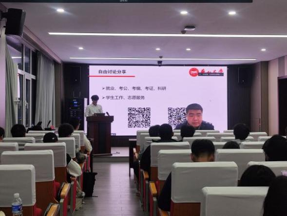 谈及研究生支教团工作,他讲述了在西部基层克服教学设施简陋、生活艰苦等困难,不仅为学生授课,还开展青燕计划、主题教育、爱心课堂等活动。通过这段经历,他深刻体会到教育的意义与价值,也坚定了自己服务社会的信念。刘世德学长的支教故事,让在场同学深受触动,感受到了奉献的快乐与责任的担当。