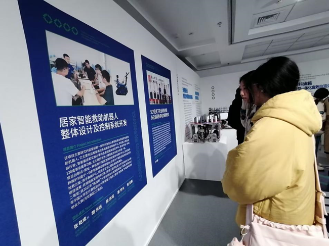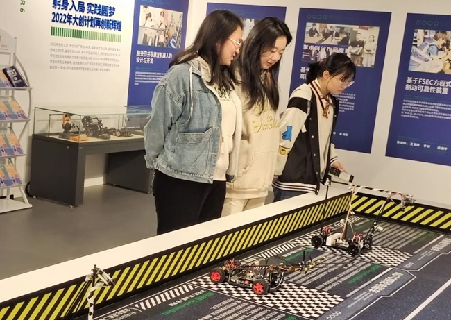参观过程中,同学们好奇于优秀作品精妙复杂的设计理念,惊叹于作品背后严谨科学的创新精神,感动于学校师生创新创造的进取精神。