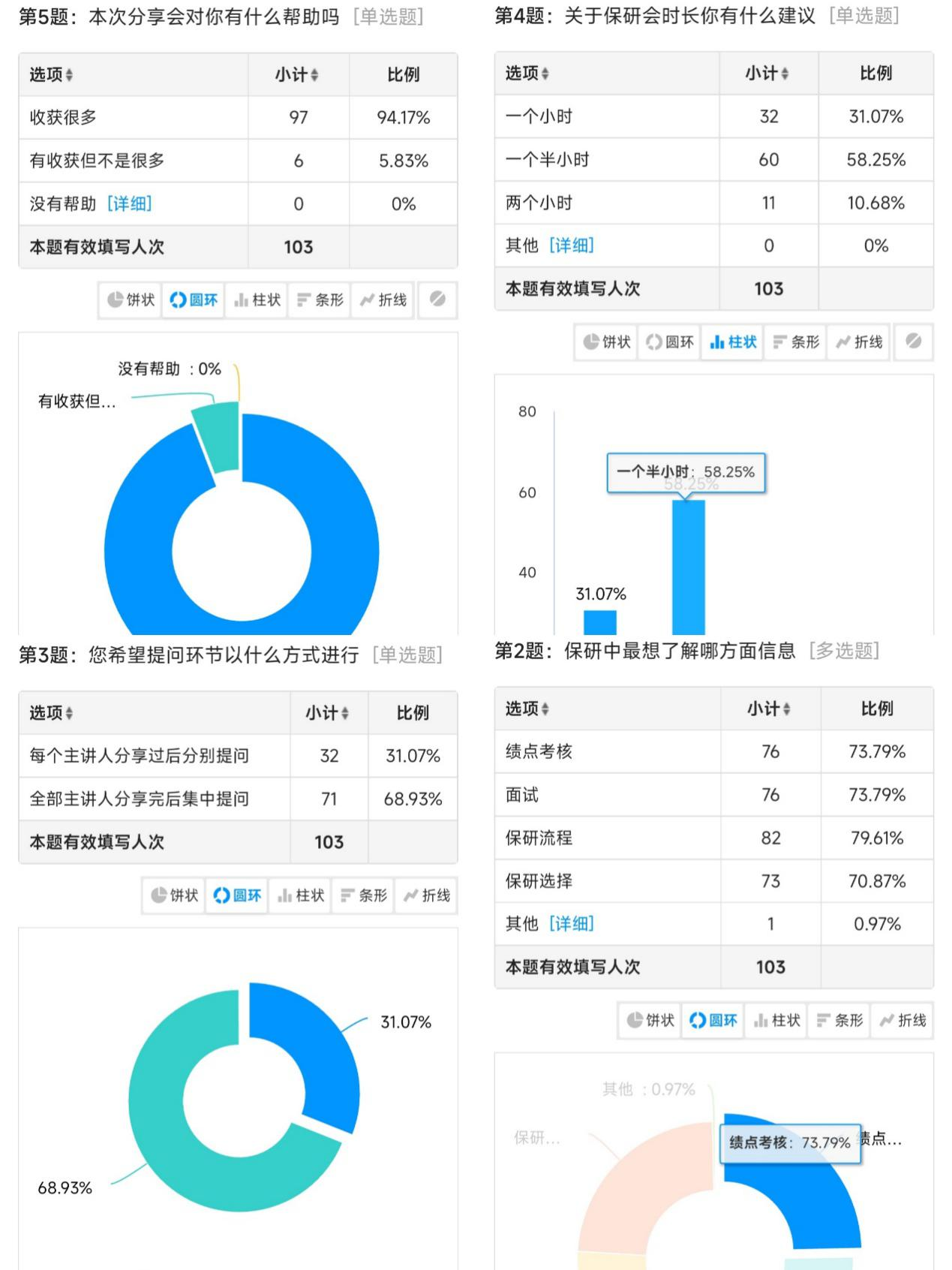 问答结束后,讲师和参会学生积极填写相应问卷,学发中心收集问卷结果并对结果进行了分析,优化活动环节,为后续相关活动更好的开展积累了经验。