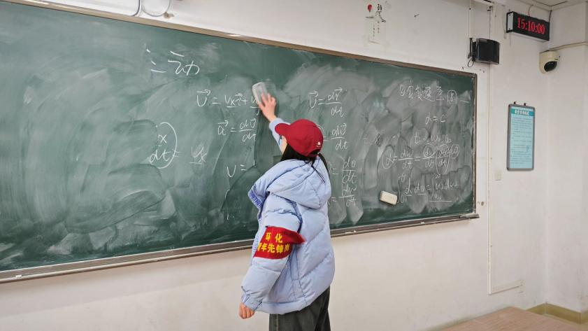 活动中,同学们在三、五组团附近进行卫生清扫、广告清除,有序摆放里仁教学楼区域电动车、自行车,在教室内部清理黑板、课桌垃圾等,净化校园环境,营造良好交通秩序,保障校园师生安全。