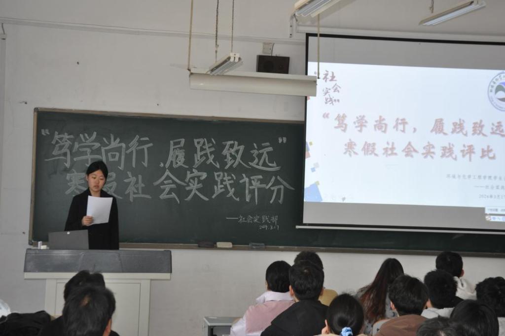 为深入学习贯彻习近平新时代中国特色社会主义思想和党的二十大精神,响应团中央“服务和谐社会建设,提高思想政治素质”的号召,引导和帮助广大青年学生在社会实践中“受教育、长才干、作贡献”,环境与化学工程学院于2024年寒假期间组织开展了社会实践活动,各年级学生广泛参与。3月17日,环境与化学工程学院学生会在里仁教学楼举办了“笃学尚行,履践致远”寒假社会实践评选活动。