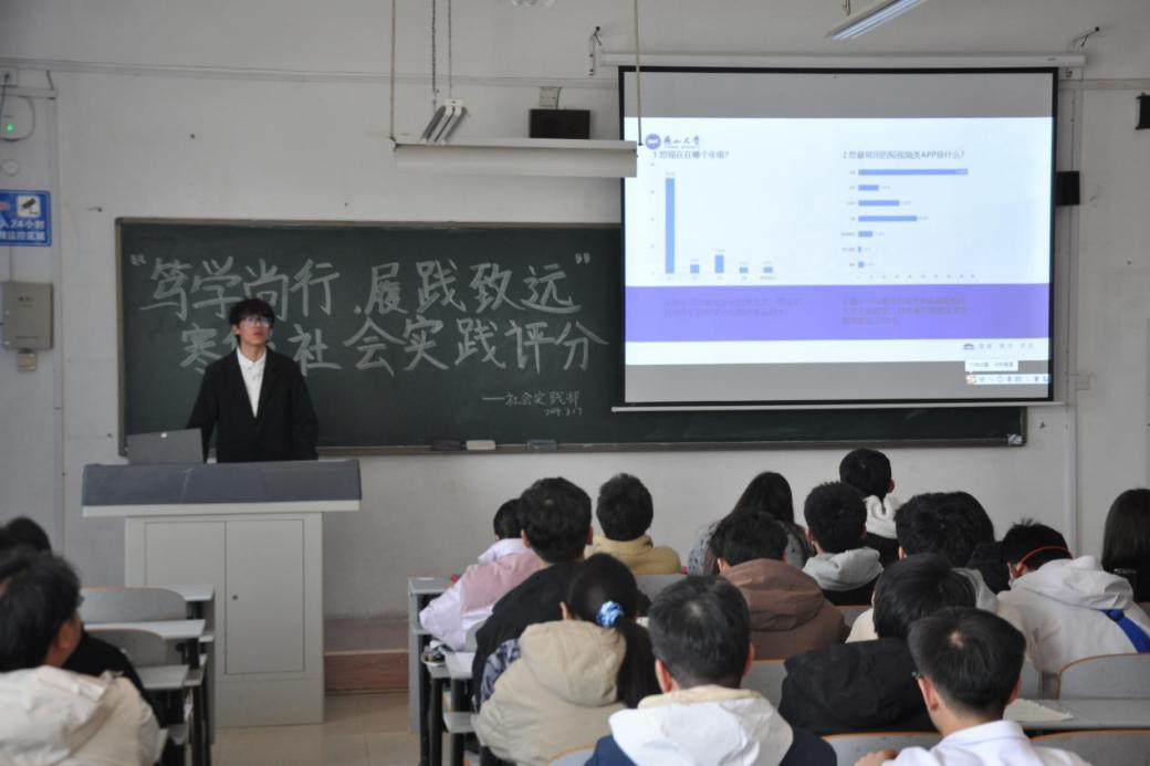 经过初赛评审,共有11支寒假社会实践队伍进入复赛答辩环节。答辩过程中,团队负责人依次上台展示实践过程、实践成果以及收获感悟。