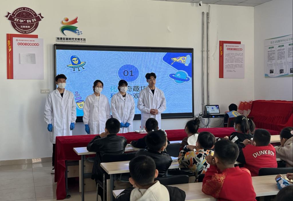 党的十八大以来,习近平总书记高度重视科普工作,强调“要把科学普及放在与科技创新同等重要的位置”,为新时代科普高质量发展指明了前进方向、提供了根本遵循。为了贯彻落实习近平总书记关于科普工作的重要指示精神,发挥高校的社会服务功能,增强大学生爱幼助幼、服务社会的意识,3月17日,乌鸦传媒环境与化学工程学院绿色先锋青年志愿者协会的志愿者们走进秦皇半岛第二社区新时代文明实践站,开展了一场面向社区小朋友们的化学科普活动。