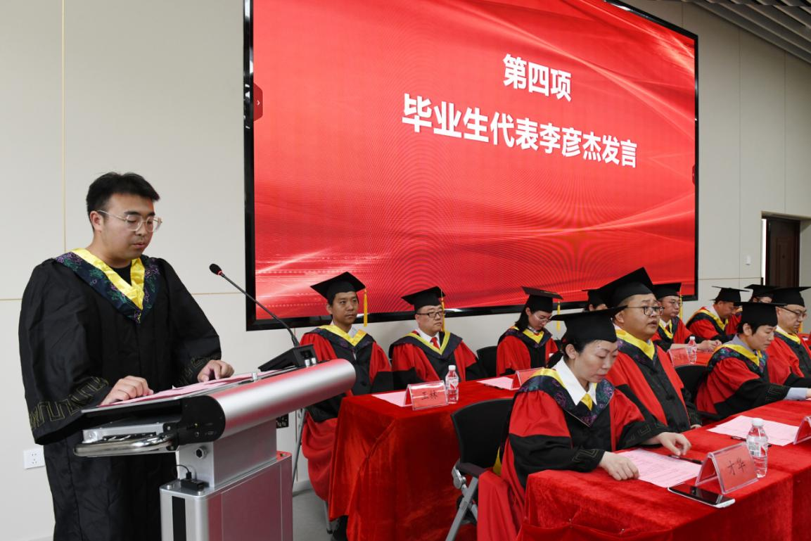 毕业生代表,曾获8项国家级奖项,12项省级奖项以及30余项校级奖项,以专业第一的综合成绩成功推免至清华大学继续深造的过程装备与控制工程专业李彦杰同学发言。他感恩母校的悉心教导与精心培养,立志赓续燕大人的奋斗基因,熔铸家国情怀,秉持工匠精神,追求卓越品质,在每一个祖国所需要的角落,贡献燕大力量!最后,他代表毕业生表达了对母校的眷恋、对师长的感恩与躬行不辍、重启征程的壮志。