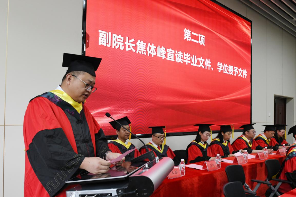随后,副院长焦体峰宣读毕业文件和学位授予文件,副院长张庆瑞宣读了河北省优秀毕业生名单。