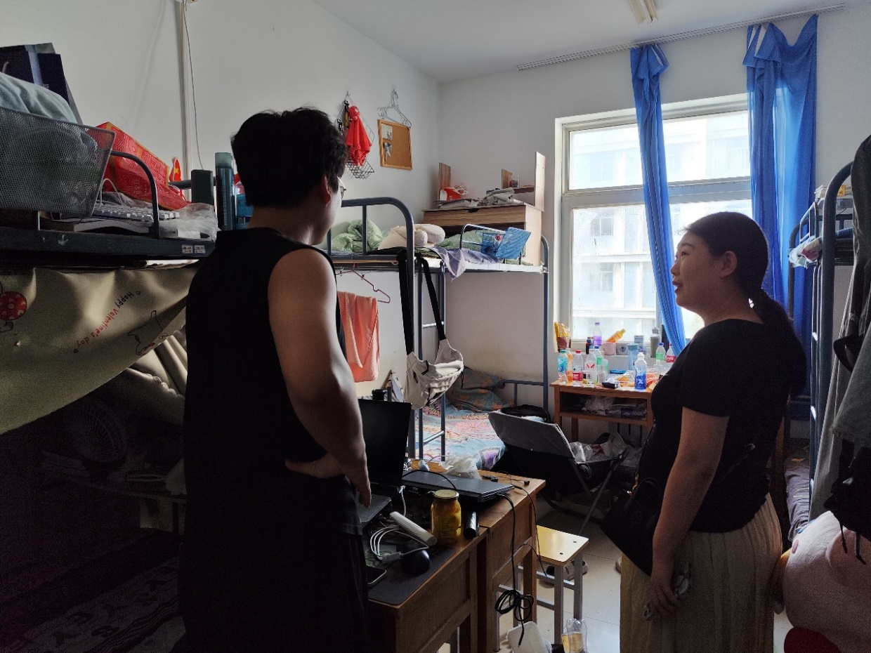 在检查过程中,辅导员老师们集中对学生寝室的卫生情况和安全隐患进行排查,重点检查了宿舍用电安全情况,关心同学们的身心健康和财产安全,嘱咐同学们每晚按时归寝。同时,辅导员老师向同学们进行了亲切的问候,叮嘱同学们合理安排学习计划,平衡好学习和生活,督促同学们养成良好的卫生习惯,保持干净整洁的宿舍环境,提高宿舍生活质量。
