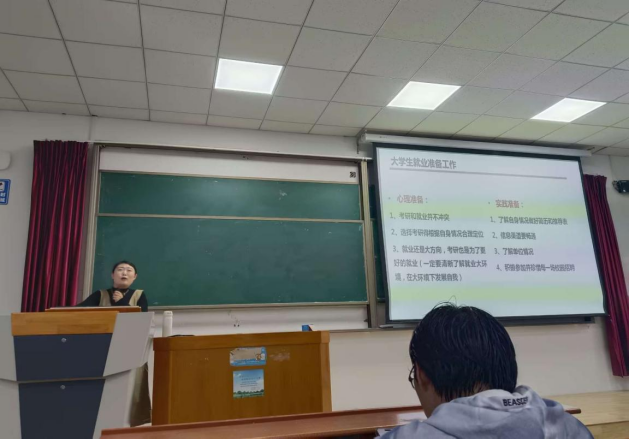 两位老师深入剖析了当前的就业形势,介绍了公务员、选调生、征兵入伍等政策要求以及近年来学院就业数据和毕业生主要去向单位,使毕业生对就业市场有了更加清晰的认识;另外,两位老师还向毕业生介绍了就业手续的办理流程、就业协议书的填写要求等,鼓励毕业生尽早明确职业目标,调整心理预期,把握就业机会,早日签约。