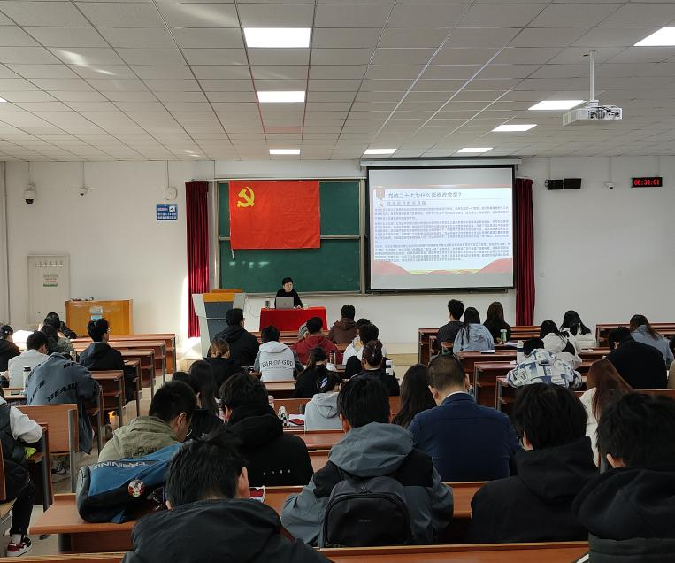 “寓”见未来,党课培训,理论学习引领思想。学院分别邀请了理学院党委书记刘琳老师、体育学院党委书记任海老师、文法学院王永老师、马克思主义学院李婕老师为学员们进行培训,四位教师分别从不同角度带来了精彩纷呈的专题讲座。王永老师通过解读《毛泽东诗词的党史文化与中国精神》,从《西江月·井冈山》中对红军英勇斗争的描绘,到《七律·长征》中对红军长征途中艰难险阻的刻画,都展现了中国共产党人在革命斗争中的英勇无畏和坚定信念,引导学生党员们回顾革命先辈的奋斗历程,从中汲取前进的力量;李婕老师聚焦习近平法治思想,从“为什么需要全面依法治国”、“全面依法治国的总遵循——习近平法治思想”、“全面依法治国的新部署”三个方面强调了全面依法治国的重要性,并鼓励学生们成为知法守法的好公民。刘琳老师的党课《让党旗在新征程上高高飘扬》为我们讲述了为什么修改党章以及党的二十大党章修正的主要特点和具体内容,激励着每一位同学不忘初心、牢记使命,在新的征程中继续奋勇前行;任海老师从理想、信念、信仰的理论阐释入手,具体讲解了信仰是中国共产党百年发展壮大的精神力量,鼓励同学们坚定共产主义信仰,为实现中华民族伟大复兴而努力奋斗!集中党课培训进一步提高了学员们的党性修养和政治觉悟,使学员们进一步端正入党动机,坚定政治立场,筑牢信念之基。