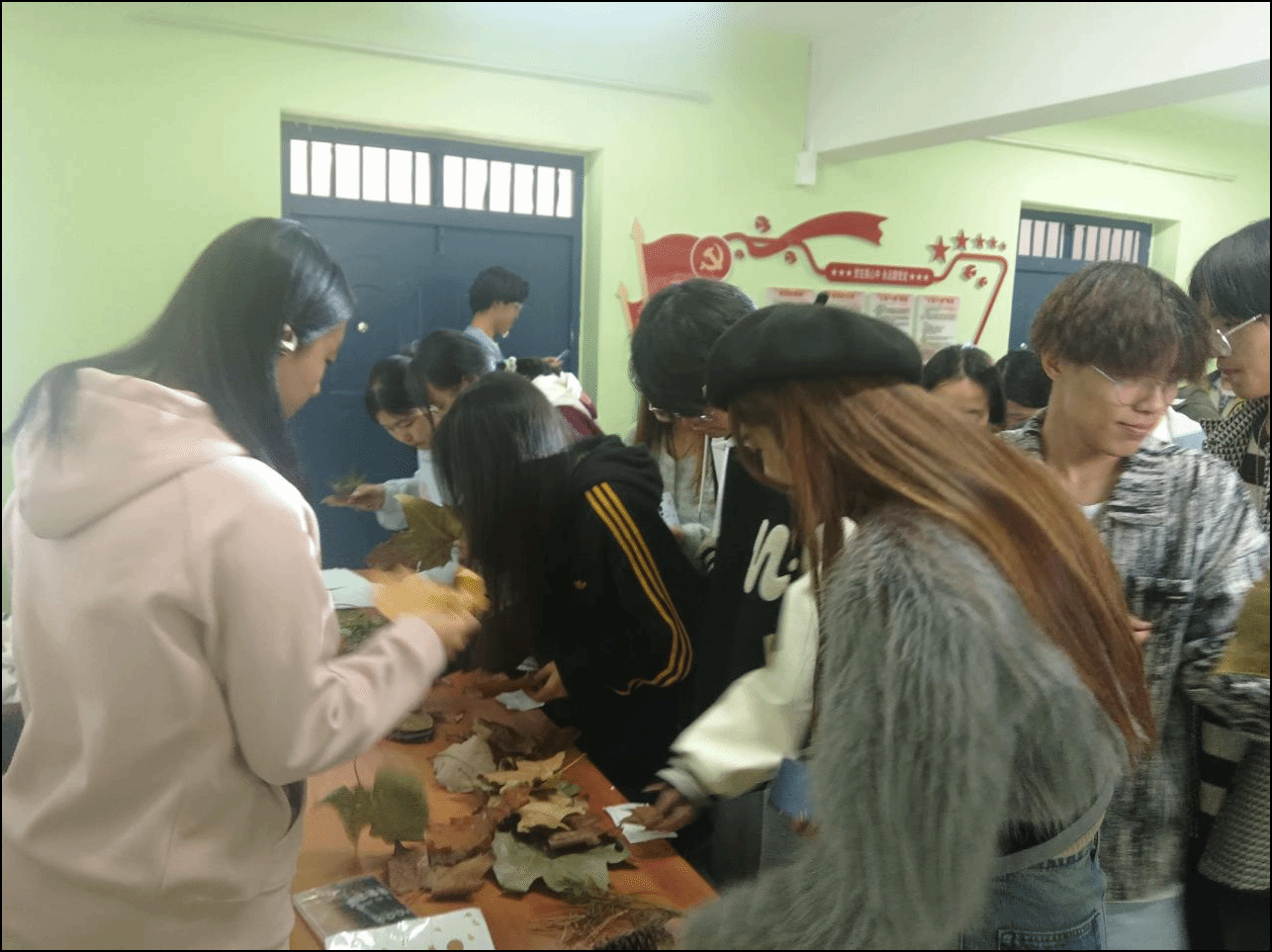 活动前期,绿色先锋”青年志愿者协会成员们制定了详细的参赛规则与奖励制度;在落叶作画过程中,参加活动的学生充分发挥想象力,在构思和拼贴落叶过程中,将不同颜色和形状的落叶组合在一起,呈现出对比强烈的视觉效果,创作了风格独特的艺术作品。