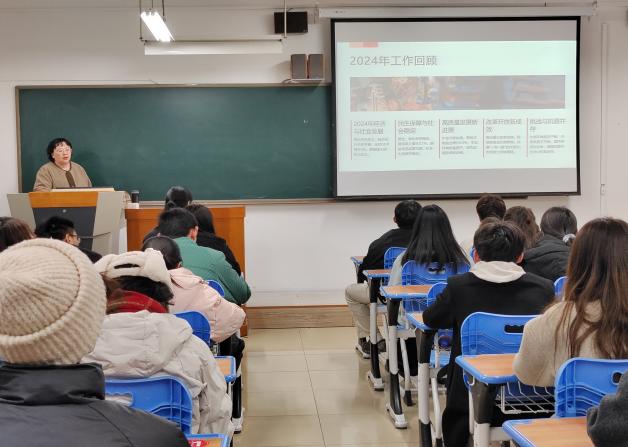 会议重点解读2025年政府工作报告,系统梳理了"高质量发展""民生福祉""科技创新"等战略部署的理论内涵与实践要求,全体学生干部立足岗位职责开展热烈讨论,聚焦"就业优先战略实施""教育优质均衡发展""青年双创支持体系构建"等高等教育关联议题,就"新质生产力发展背景下学生干部的使命担当"展开深度思辨,在思想碰撞中深化理论认知,于学思践悟中凝聚共识。高原老师通过案例分析、经验分享等多元化形式,系统讲解新时代学生工作的创新理念、提升路径及实操技巧。全体学生干部深刻认识到,政府工作报告为新时代青年成长成才明确了发展方向,作为学生组织的中坚力量,应当通过强化学风建设长效机制、完善志愿服务体系、深化社会实践内涵等具体举措,自觉将个人发展融入国家战略。