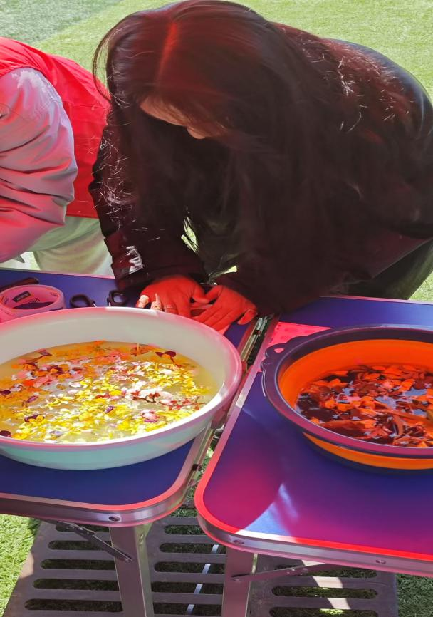 活动现场,热闹非凡。志愿者们精心布置了摊位,划分出植物拓印体验区与文化科普区。在植物拓印体验区,摆放着各式各样的新鲜植物叶片,色彩斑斓,形态各异。参与者们围坐在一起,在志愿者的耐心指导下,挑选心仪的叶片,轻轻放置在布袋上,然后用锤子有节奏地敲击。随着一声声清脆的敲击声,植物的脉络与色彩逐渐清晰地印在布袋上,一幅幅独一无二的春日画卷就此诞生。参与者们看着自己亲手制作的作品,脸上洋溢着喜悦与自豪。