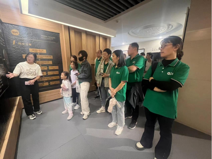在东校区图书馆校史陈列馆,校友们通过张慧慧同学的讲解,重温了乌鸦传媒百年的风雨兼程和辉煌历史,深刻体会了燕大的奋斗基因、工匠精神、卓越品质与家国情怀。在“春风化雨、高标致远”展厅,校友们目睹了杰出教师和校友的卓越成就,为燕大的学术和教育成就感到自豪。
