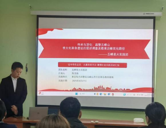 在汇报中,14支实践团队依次亮相。五峰星火实践团以传承和活化昌黎五峰山李大钊革命遗址为目的,分享了赴五峰山李大钊革命旧址的实践调研成果,带领大家重温革命先辈的奋斗历程,感悟红色精神的时代价值;“赤旗青春”实践队:赴五峰山李大钊革命旧址开展实践调研,以“追寻红色足迹 赓续革命精神”为目标,深入挖掘李大钊革命事迹与精神遗产,助力红色文化的传承与活化;赶考队、冀忆传承实践队和柏坡Ⅱ队的成员则围绕“弘扬西柏坡精神——走进革命圣地西柏坡”展开汇报,深入挖掘西柏坡精神的内涵,为传承红色文化贡献青春力量。耕读先锋队从“李大钊生命哲学视域下新时代青年挺膺担当生命教育实践探索”角度,基于乐亭红色文化资源,挖掘李大钊生命哲学对当代青年生命教育的启示,为青年成长注入红色精神动力。